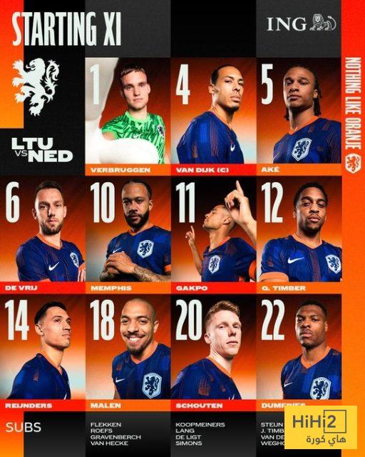 تشكيلة هولندا الرسمية ضد ليتوانيا في تصفيات كأس العالم 2026