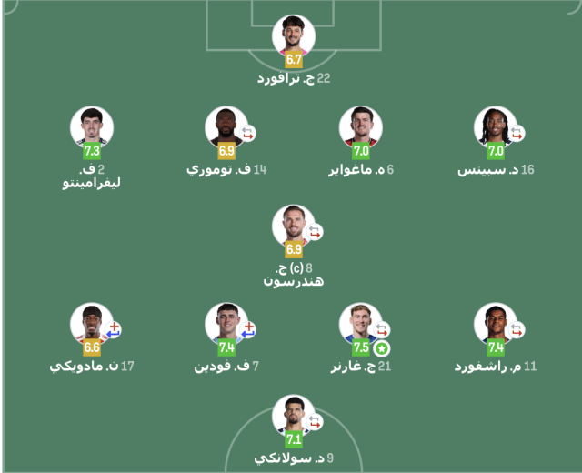 وحصل غارنر على التقييم الأعلى في اللقاء من موقع سوفا سكور بعد أدائه الكبير الذي قدمه منذ بداية المباراة وحتى خروجه في الشوط الثاني.