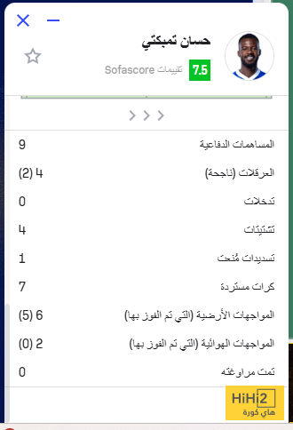 هاي كورة : قدم حسان تمبكتي أداءً لافتًا مع الهلال خلال مواجهة الرياض، حيث ظهر بثبات وقوة في الخط الخلفي، ونجح في إيقاف العديد من الهجمات الخطيرة، إلى جانب تفوقه في الالتحامات والكرات الهوائية، ليساهم بشكل واضح في الحفاظ على توازن الفريق دفاعيًا طوال اللقاء.