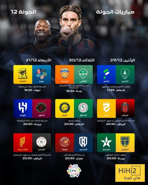 جدول مباريات الجولة الـ 12 من دوري روشن