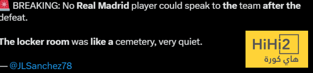 لم يتمكن أي لاعب من ريال مدريد من التحدث إلى الفريق بعد الهزيمة ، ساد الصمت داخل غرفة الملابس ، وكأنها جنازة .