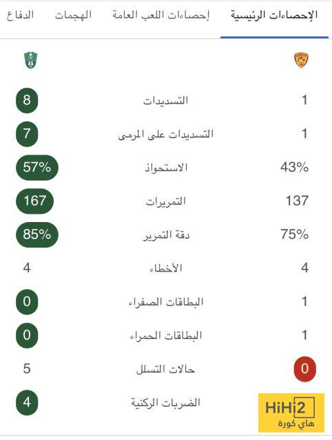شاهد إحصائيات الشوط الأول بين الأهلي والقادسية