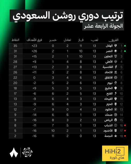 الهلال بـ 35 نقطة من أصل 39 ، سجل 35 هدفًا واستقبلت شباكه 12 أخرين .