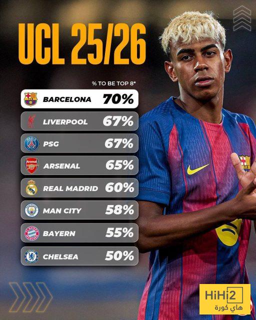 شاهد نسبة حظوظ الاندية في دوري ابطال اوروبا