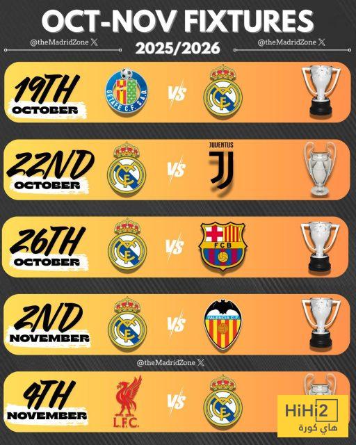 وفقًا لجدول الليغا والبطولة الأوروبية، يخوض ريال مدريد خمس مباريات مهمة خلال أيام قليلة، كالتالي:
