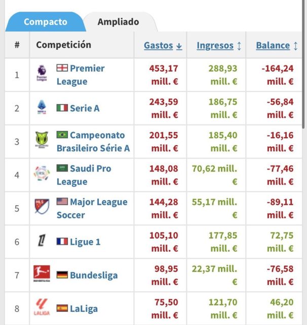 هاي كورة : كشف تقرير حديث عن تواجد أندية الليغا في المركز الثامن في الإنفاق خلال سوق الانتقالات الشتوية ، خلف اندية الدوري الإنجليزي ، الإيطالي ، البرازيلي ، السعودي ، الأمريكي ، الفرنسي والألماني .