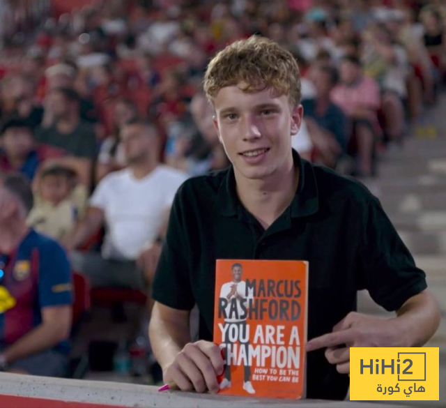 أحد مشجعي برشلونة ظهر في المدرجات وهو يحمل كتاب “انت بطل” الذي ألفه لاعب برشلونة الجديد ماركوس راشفورد.