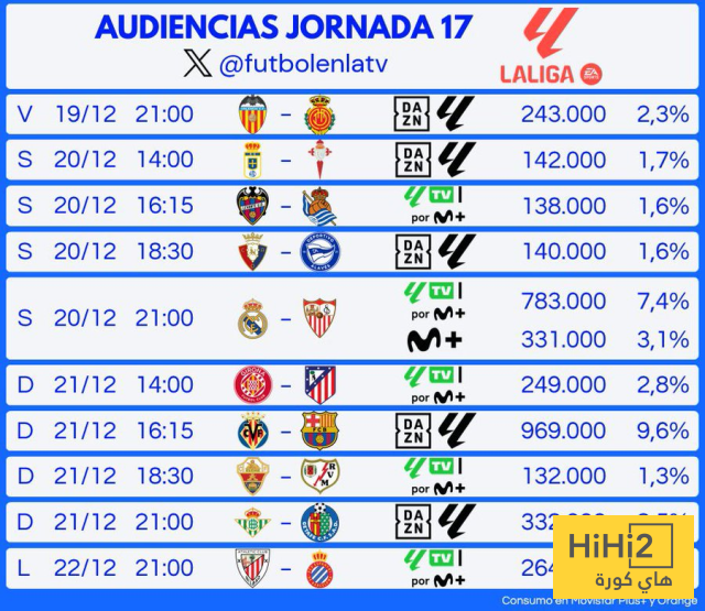 هاي كورة- اختتم الدور الأول من الدوري الإسباني 2025 بانخفاض طفيف في نسب المشاهدة ، حسب التقارير الرسمية.