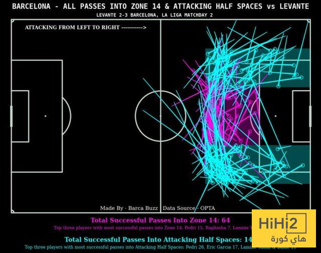 هاي كورة – أظهر برشلونة تفوقًا هجوميًا ملحوظًا أمام ليفانتي بفضل تحركاته وتمريراته الدقيقة في المناطق المؤثرة، حيث سيطر الفريق الكتالوني على المنطقة المركزية أمام منطقة الجزاء والمساحات النصفية، وهو ما كان أحد أهم مفاتيح الفوز بثلاثية لهدفين خارج معقله.