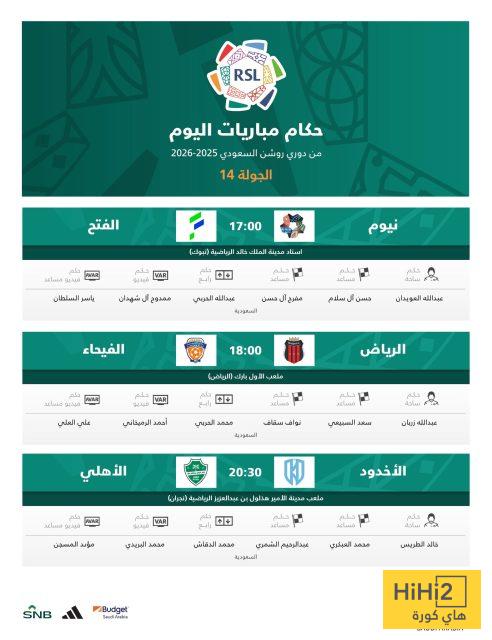 هاي كورة – يشهد اليوم السبت إقامة ثلاث مباريات في الجولة الرابعة عشرة من دوري روشن للمحترفين لموسم 2025/26 ، وقد أعلن الاتحاد السعودي لكرة القدم عبر حسابه الرسمي عن الطواقم التحكيمية المكلفة بإدارة هذه اللقاءات .