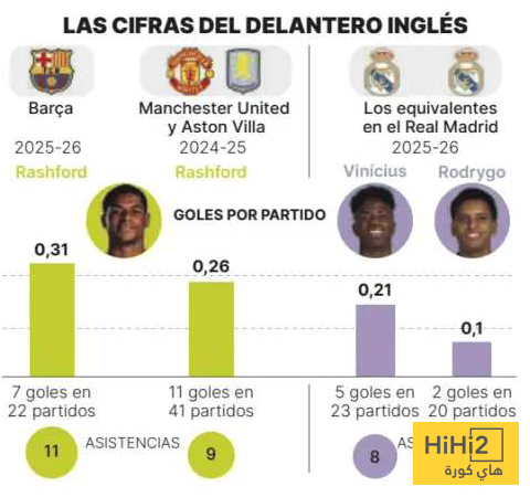 وسجل راشفورد 7 أهداف وصنع 11 تمريرة حاسمة في 22 مباراة، وهو أداء يتفوق على ما يقدمه فينيسيوس ورودريغو مع ريال مدريد مجتمعين (7 أهداف و10 تمريرات).