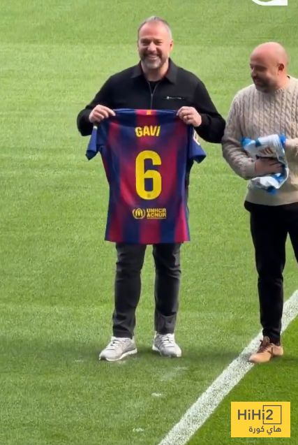 وخلال الصورة التقليدية بين المدربين ظهر المدرب فليك ومعه قميص غافي  وكان سعيدا بحمله اثناء التقاط الصورة .