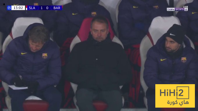 مدرب برشلونة ، هانسي فليك ، لم يظهر اي رد فعل على هدف سلافيا براغ حيث اكتفى بالجلوس حزينا على مقاعد البدلاء :