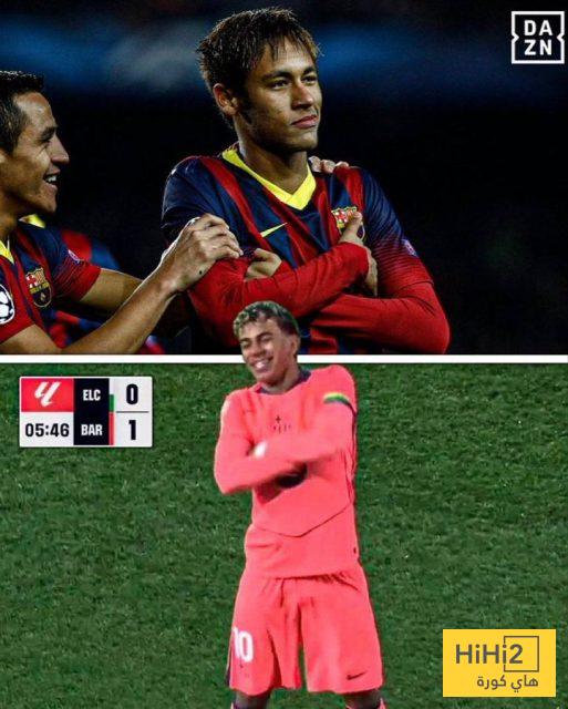 هاي كورة : سجل نجم برشلونة ، لامين يامال ، الهدف الأول لصالح الفريق أمام إلتشي في المباراة المقامة حاليًا ضمن الدوري الاسباني ، واحتفل على طريقة قدوته نيمار .