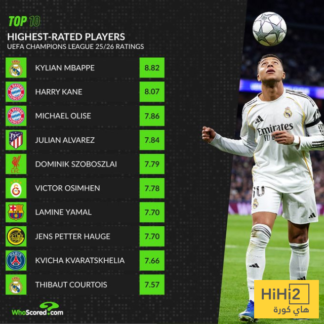هاي كورة- كشف موقع Whoscored عن قائمة بأسماء افضل 10 لاعبين من حيث التقييم في هذا الموسم بدوري ابطال اوروبا .