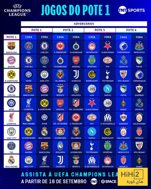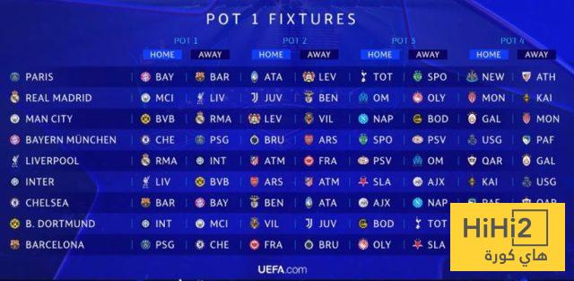 صورة.. مباريات فرق التصنيف الاول في دوري ابطال اوروبا
