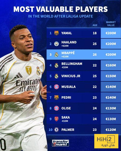 هاي كورة- يتصدر الثلاثي كيليان مبابي ولامين يامال وإرلينغ هالاند قائمة أغلى 3 لاعبين في العالم بسعر 200 مليون يورو، بحسب التحديث الأخير لموقع ترانسفير ماركت.