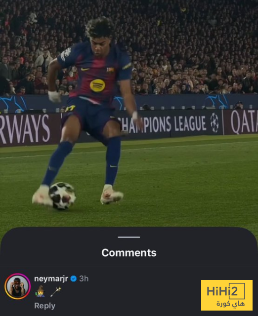 تفاعل النجم البرازيلي نيمار جونيور ، لاعب سانتوس حاليا ، مع منشور للحساب الرسمي لنادي برشلونة على منصة انستغرام يستعرض مهارات المراوغة لدى لامين يامال .