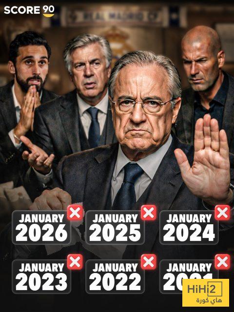 هاي كورة- اصبح عدم التسوق في الميركاتو الشتوي عرفا في نادي ريال مدريد في الالفية الثالثة أي في عهد الرئيس الحالي فلورنتينو بيريز الذي تولى الرئاسة بين 2000 و 2006 ثم منذ 2009 و حتى اليوم .
