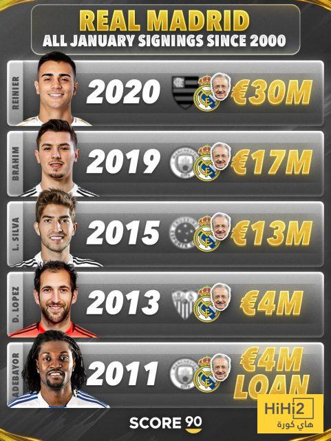 اخر مرة جلب فيها ريال مدريد لاعبا في الميركاتو الشتوي خلال عهد الرئيس الحالي كانت في يناير العام 2020 عندما تعاقد مع البرازيلي رينيير مقابل 30 مليون يورو في صفقة غير مجدية.
