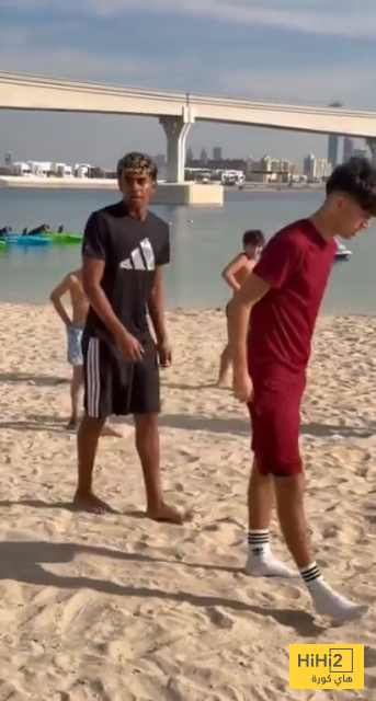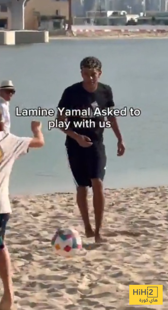 صور – لامين يامال يلعب الكرة مع الأطفال على الشاطئ