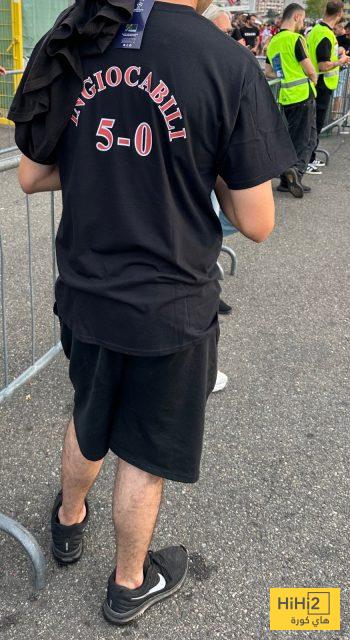 محبو الميلان تفننوا في السخرية من خسارة انتر ميلان من خلال الكتابات التي ظهرت على اقمصتهم مثل عبارة .. شكرا باريس و تحتها النتيجة 5-0.