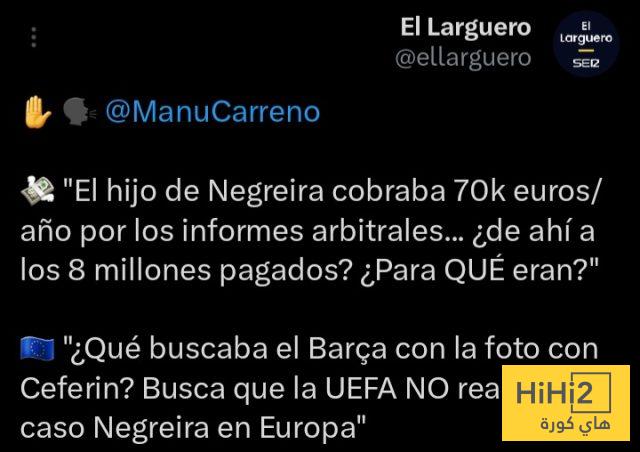 “ابن نيغريرا كان يتقاضى 70 ألف يورو سنويًا مقابل تقارير الحكام، فماذا عن ال8 ملايين يورو الأخرى المدفوعة؟ ما هو الغرض منها؟”.