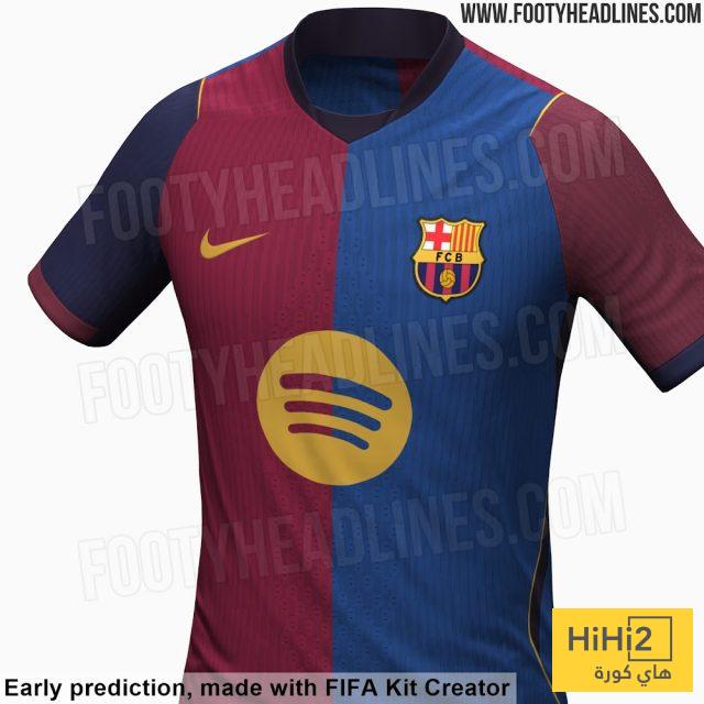 القميص سيقسم عموديا إلى جزئين بالأزرق والأحمر، مع تخصيص كل كم بلون مختلف، حيث سيكون الأزرق في الذراع اليمنى والأحمر في اليسرى. كما يتوسط شعار “Spotify” الواجهة، بينما تزينه خطوط ذهبية عند الكتفين وياقة على شكل “V”، إلى جانب شعار “نايكي” وشعار النادي لإكمال المشهد.