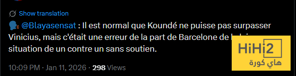 ” من الطبيعي ألا يتمكن كوندي من تجاوز فينيسيوس ، ولكن كان من الخطأ من جانب برشلونة تركه في موقف فردي دون دعم ” .