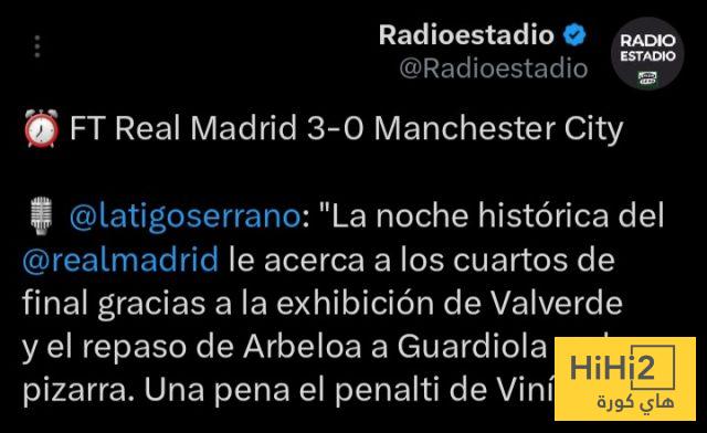 “الليلة التاريخية من ريال مدريد تقربه من ربع النهائي، بفضل تألق فالفيردي والدرس الذي أعطاه أربيلوا لجوارديولا”.