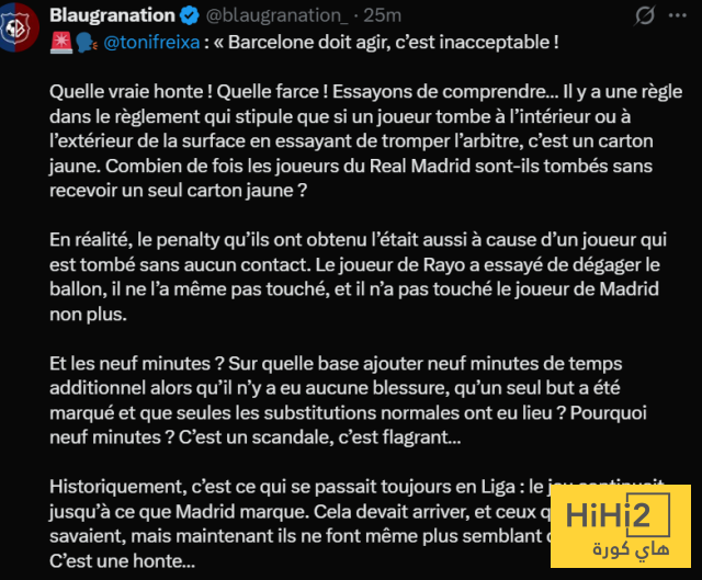يا له من عار ! يا لها من مهزلة! دعونا نفهم… هناك مادة في القانون تقول إن اللاعب إذا سقط داخل أو خارج منطقة الجزاء محاولًا خداع الحكم فهذه بطاقة صفراء، كم مرة سقط لاعبو ريال مدريد دون أن تُشهر في وجوههم بطاقة صفراء واحدة؟