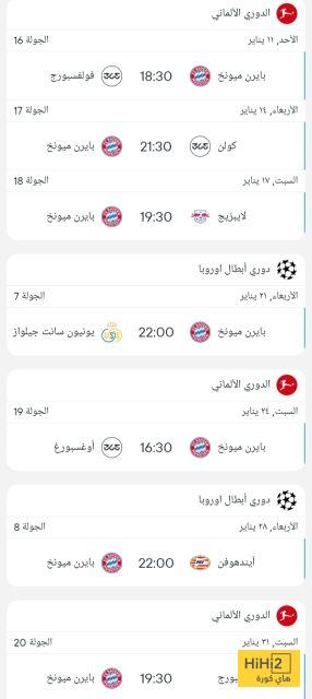 وجاءت مباريات بايرن ميونيخ كالتالي :