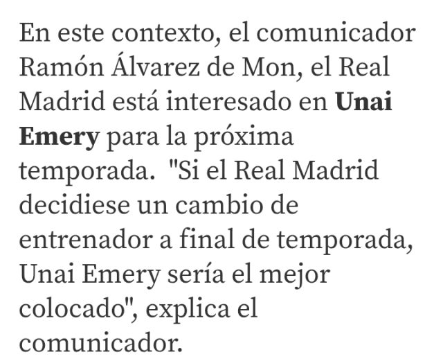 ” إذا قرر ريال مدريد إجراء تغيير على مستوى المدرب في نهاية الموسم ، فإن أوناي ايمري سيكون المرشح الأوفر حظًا “.