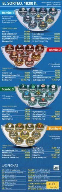 وسيُكشف عن جدول المباريات صباح السبت على أبعد تقدير، على أن تنطلق الجولة الأولى أيام 16 و17 و18 سبتمبر. وستتأهل الفرق الثمانية الأولى مباشرة إلى دور الـ16، فيما تخوض الفرق من المركز التاسع حتى الرابع والعشرين مباريات فاصلة للتأهل، بينما تُقصى الأندية من المركز 25 إلى 36 نهائيًا.