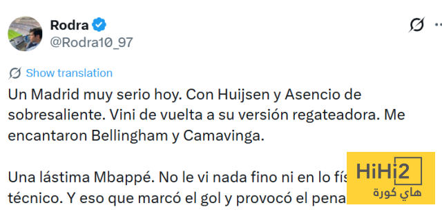 ظهر ريال مدريد بمستوى متماسك للغاية ، تألق هويسين وأسينسيو بشكل لافت ، واستعاد فيني مهاراته في المراوغة ، أعجبتني مشاركة بيلينغهام وكامافينغا ، من المؤسف غياب مبابي عن مستواه المعهود ، لم يكن في أفضل حالاته ، لا بدنياً ولا فنياً ، رغم تسجيله الهدف وحصوله على ركلة الجزاء .