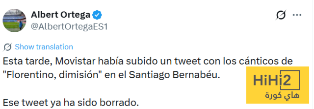 نشرت قناة موفيستار بعد ظهر اليوم تغريدة تضمنت هتافات “فلورنتينو، استقيل” في ملعب سانتياغو برنابيو ولكن التغريدة حذفت لاحقا .