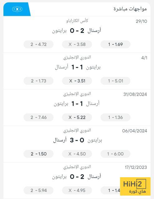 نتائج آخر خمس مباريات بين أرسنال وبرايتون