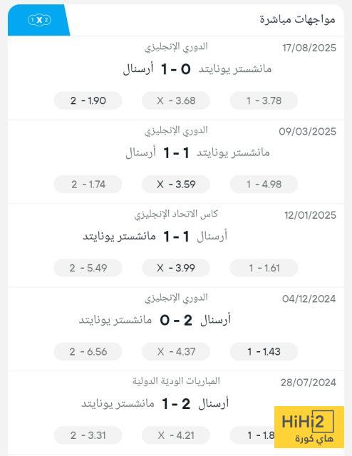 نتائج آخر خمس مباريات بين أرسنال ومانشستر يونايتد