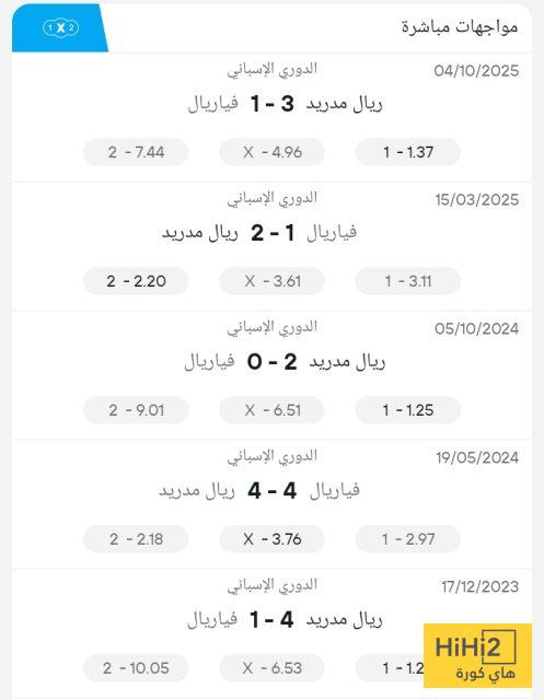 نتائج آخر خمس مباريات بين ريال مدريد وفياريال