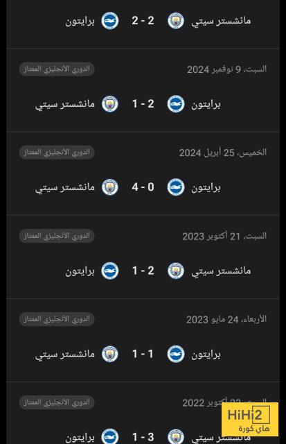 نتائج أخر 6 مواجهات جمعت مانشستر سيتي و برايتون