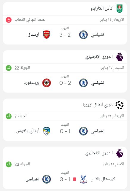 نتائج تشيلسي قبل مواجهة نابولي في دوري الأبطال