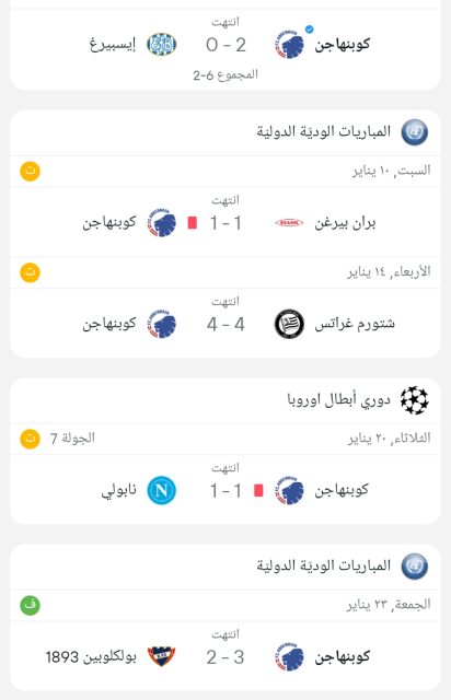 نتائج كوبنهاجن قبل مواجهة برشلونة في دوري الأبطال