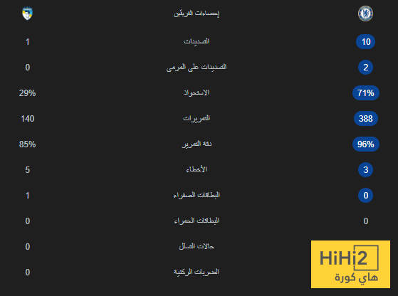 احصائيات الشوط الاول من المباراة :