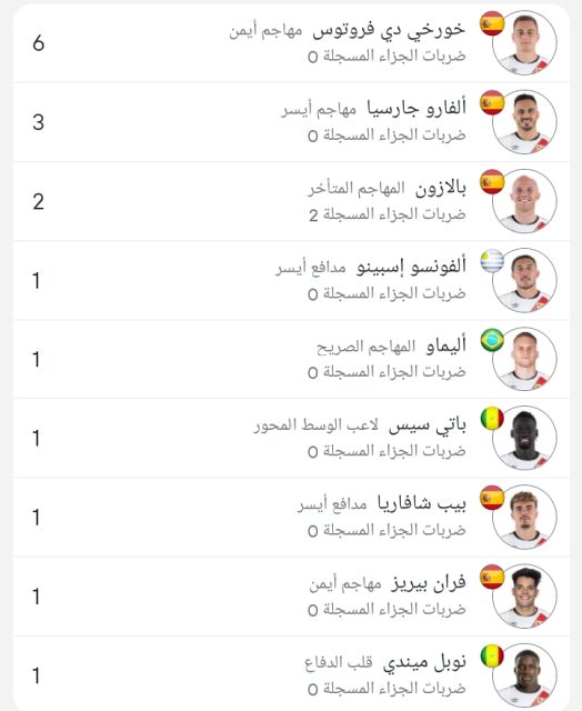 وجاءت قائمة هدافي رايو فاليكانو كالتالي :